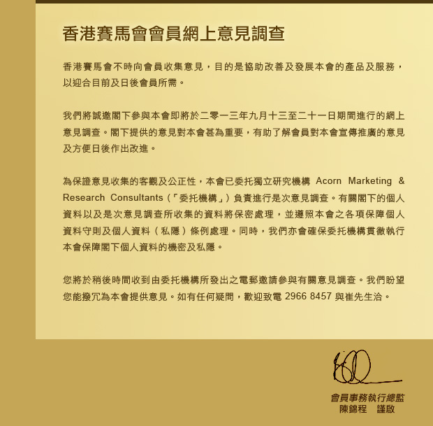 如有任何查詢,請郵寄至會員事務部,香港跑馬地體育路壹號或電郵至